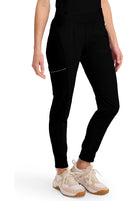 Pantalón mujer cherokee infinity tipo jogger de pierna cónica, tiro medio y estilo contemporáneo. presenta una cintura elástica de punto acanalado con bolsillos delanteros con cremallera en ángulo, un bolsillo tipo cargo con cinta reflectante y dos bolsillos de parche en la parte posterior.